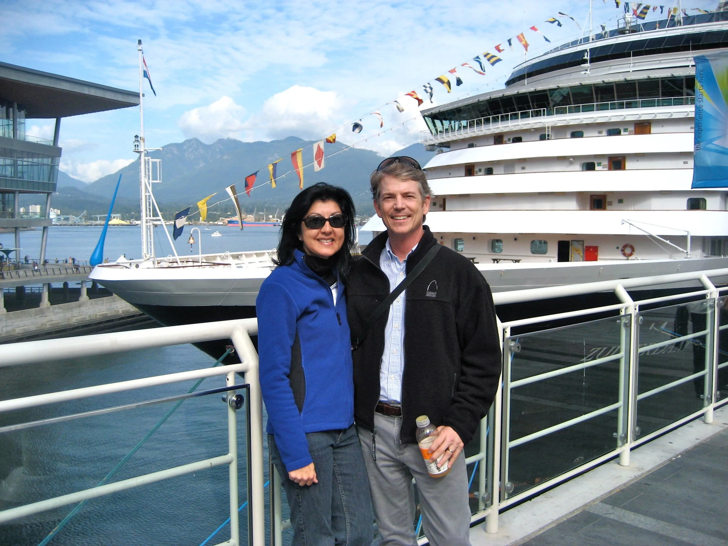 We woke at dawn to catch our train to Vancouver which took us past white boats on Puget Sound, patchwork farms, and sleepy towns. Once we checked in at our hotel, we walked through downtown to the shuttle to Grouse Mountain. Little did we know that the Grouse Grind was an unrelenting vertical climb for 1.8 miles to the top. Other eye-openers were the stunning blues of the harbor, the towering condos, the morning sights at Stanley Park and the Olympic torches on the waterfront. Our ferry to Victoria at sunset closed our second day in Vancouver.