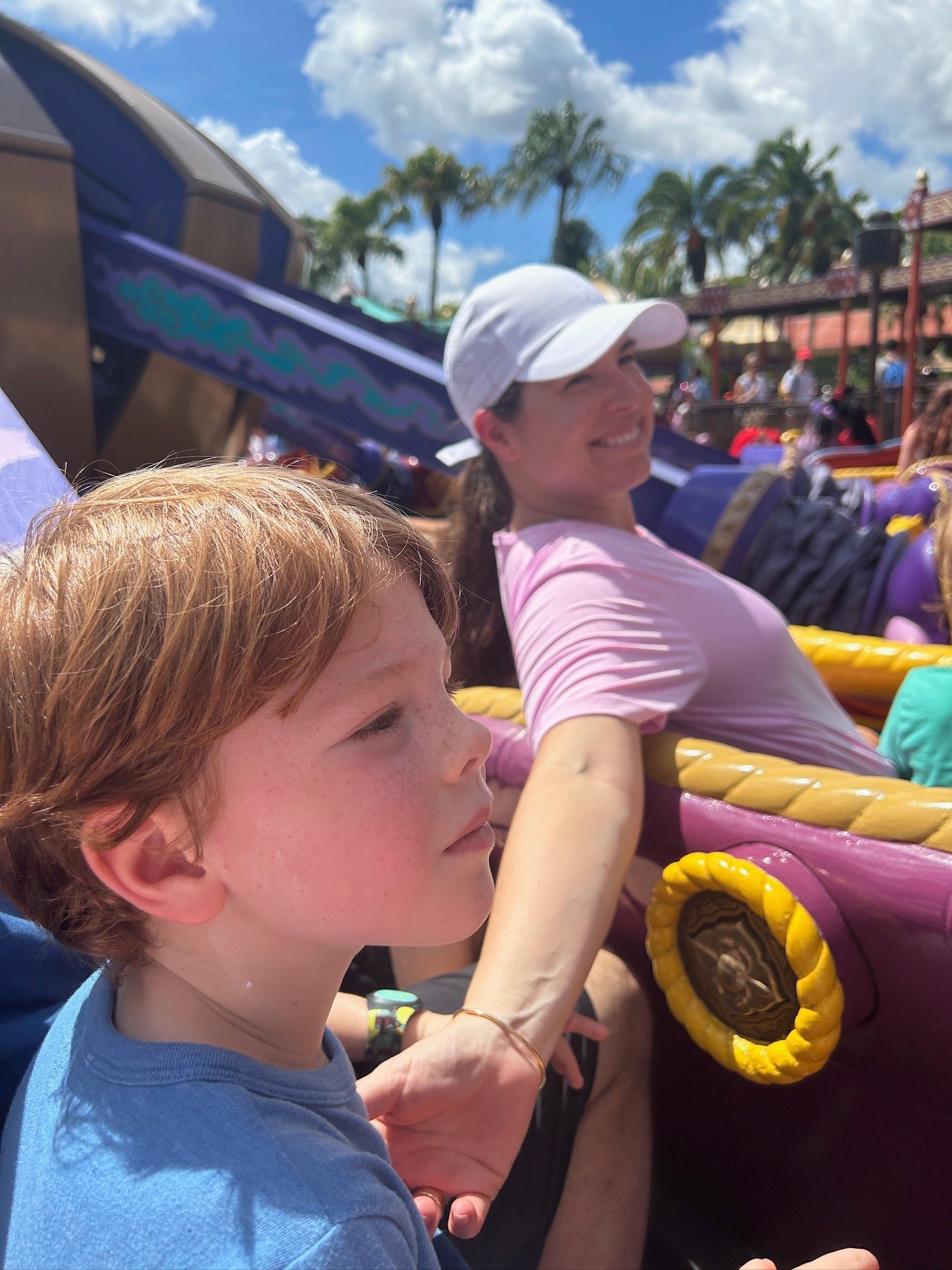 The last time we were in Disneyworld was decades ago, but this time with Jack and Benjamin, with their mom and dad tagging along, brought back all those memories. Elizabeth had every day planned down to the entry time for every ride, and thanks to expert help from a friend of hers and Andrew’s, the trip went like clockwork. That’s not to say we didn’t run into a few obstacles, like Hurricane Debby hitting Florida the day after we arrived, and poor Jack running a fever for the first day traveling. We did get drenched a few times over, but the storm brought cloudy, cooler weather for a couple of days. And that’s big relief in the sweltering temps of Orlando in August. It was altogether a wonderful trip. We started in Animal Kingdom with the intense but beautiful banshee ride in Pandora and the Kilimanjaro Safari, which surprised us with the number of African animals we saw up close in their natural habitat. That morning we were all dressed in rain gear, except for Mark, and prepared to be drenched in the Kali River Rapids, when a sudden downpour hit just as the ride started, soaking Mark to the skin. He was a hilarious sight, straight out of a Disney cartoon. The Disney characters—Mickey, Chip & Dale, and Pluto especially—were a big hit with Jack and Benji, along with all the princesses. Pirates of the Caribbean was the thing Benjamin was looking forward to, but we were surprised at how much he liked the Haunted Mansion. Jack’s big imagination got the better of him on that ride. All in all, Magic Kingdom was, well, magical, and the perfect place for the boys to burn energy climbing the Swiss Family Treehouse and exploring Tom Sawyer Island. Epcot has always been Elizabeth’s favorite. She chose the Yacht Club near the entrance to the World Showcase for our stay and planned dinners in France, Mexico, and Canada. Of course, we spent a good amount of time in Japan and were so impressed with the lovely young Japanese women working there. Elizabeth was a woman on a mission getting the boys’ official passports stamped in each country. These very special keepsakes were well worth all the effort. Hollywood Studios was our last stop where Toy Story, Indiana Jones, and Star Wars live up to their top billing. Hands down, my favorites were the Star Wars rides, Soarin’ Around the World, old classics like Spaceship Earth and Snow White, and every attraction with Disney music. As always, the music is the icing on the cake.